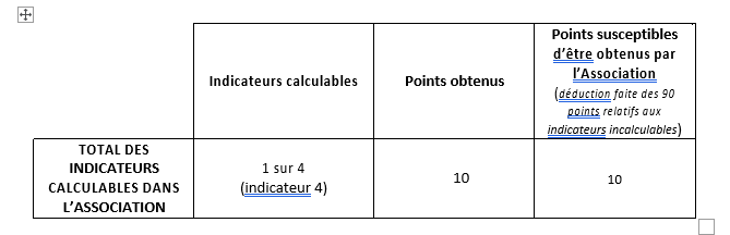 L’indicateur 4 est calculable, l’Association obtient le score de 10 points sur 10.